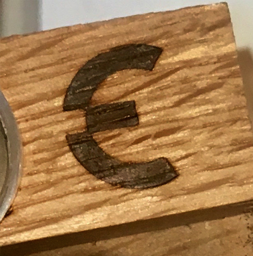 Har fått meg et stempel av stål som jeg varmer opp og brennmerker treverket med.