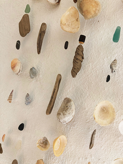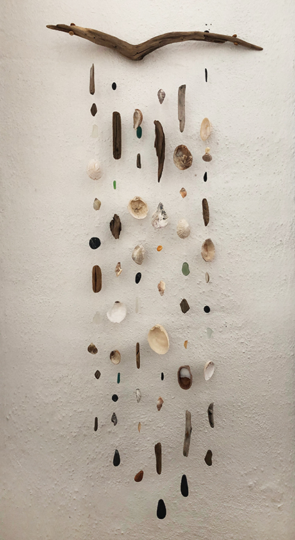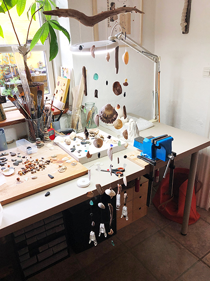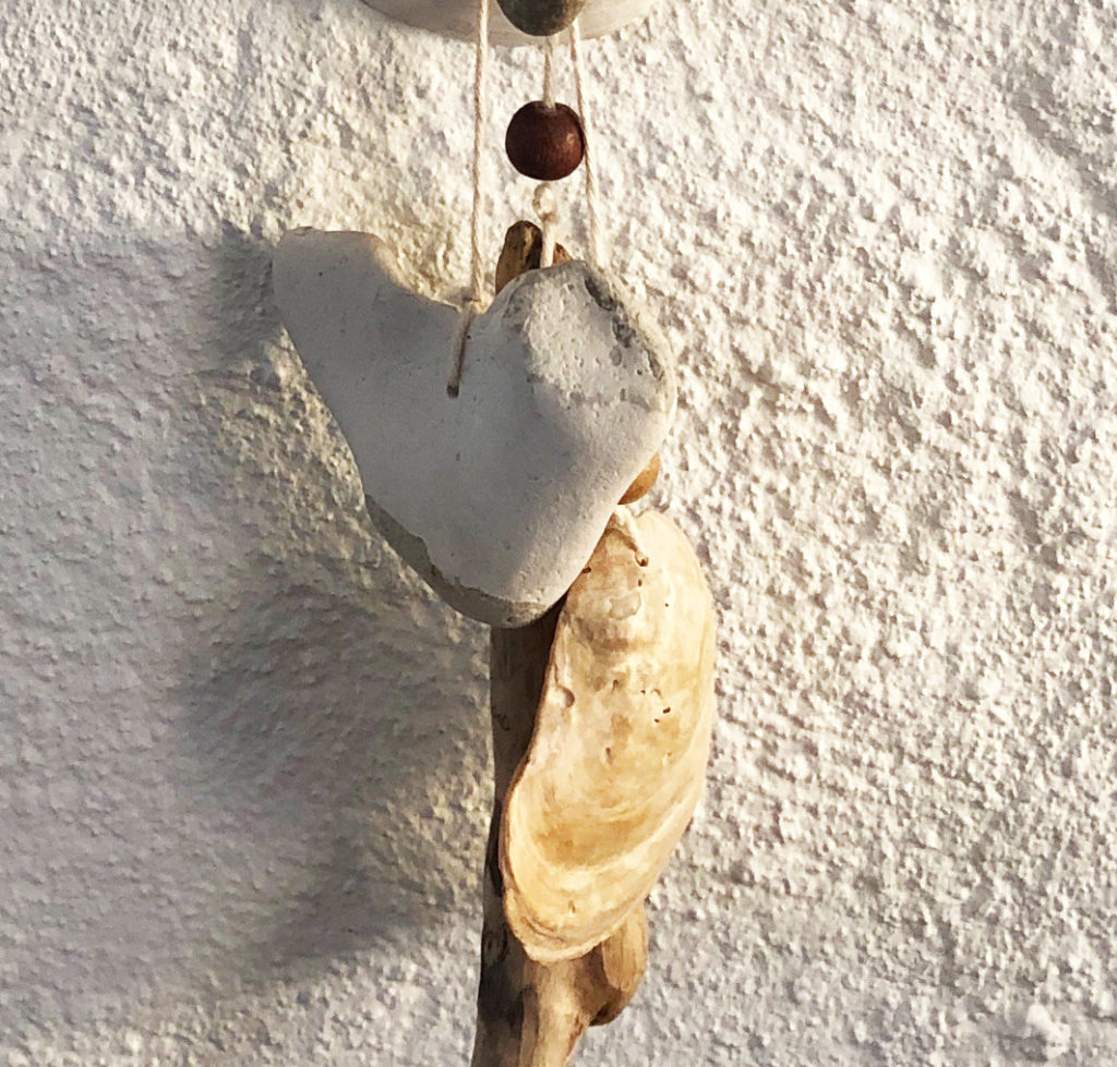 Med min uunværlige dremmel har jeg sittet timesvis å boret hull i stener, drivved, skjell og strandglass. Så knyttet,dandert og justert for å få den ønskede fasongen.