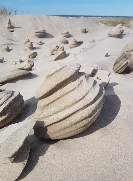 Etter hva jeg har lest om fenomenet må sanden være mettet med vann og vinden blåse så det oppstår en turbin effekt for at disse formasjonene skal oppstå.