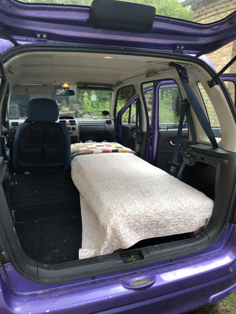Helt overaskende og veldig gledelig har jeg fått min lille Opel Agila til å romme en hel seng og alt utstyr for å begi meg ut på overnattingsturer.