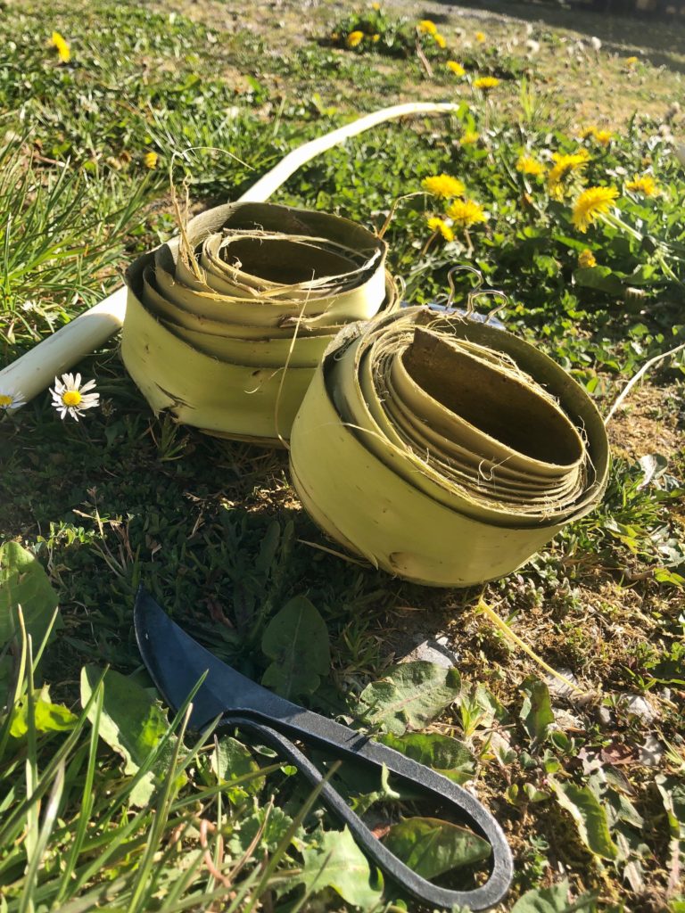 Det er i mai-juni sevjen er fuktig og barken slipper taket fra stammen. De snittes på langs fra topp til bunn så kan man skrelle den av stammen. Så må de tørkes til all fuktigheten er ute av før de så kan bløtes opp i vann og snittes opp til fletting.