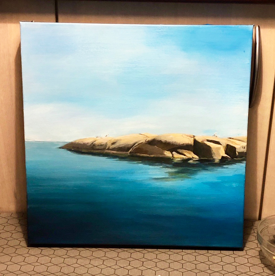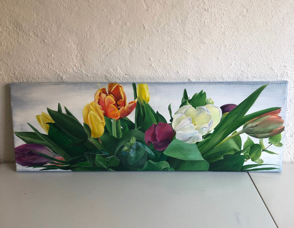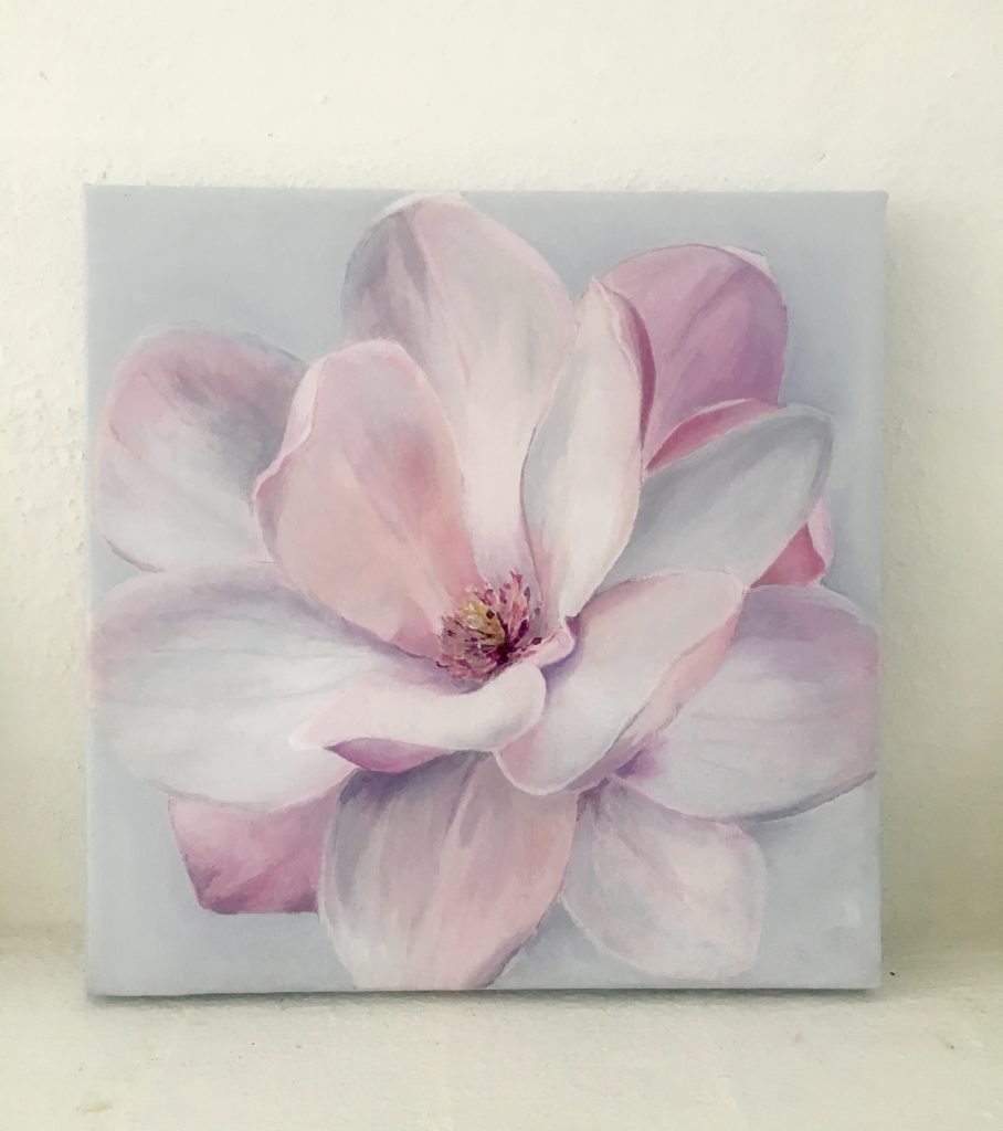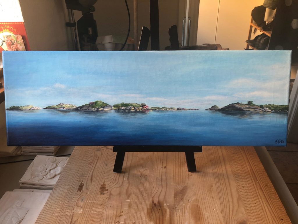 Maler motiver inspirert av naturen. Akryl på lærret